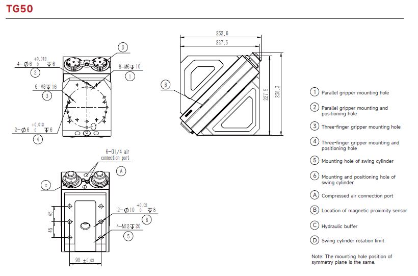 | Tekrarlı tutma hassasiyeti | ±0,05 | Hava bağlantı portu | G1/4 | ||||