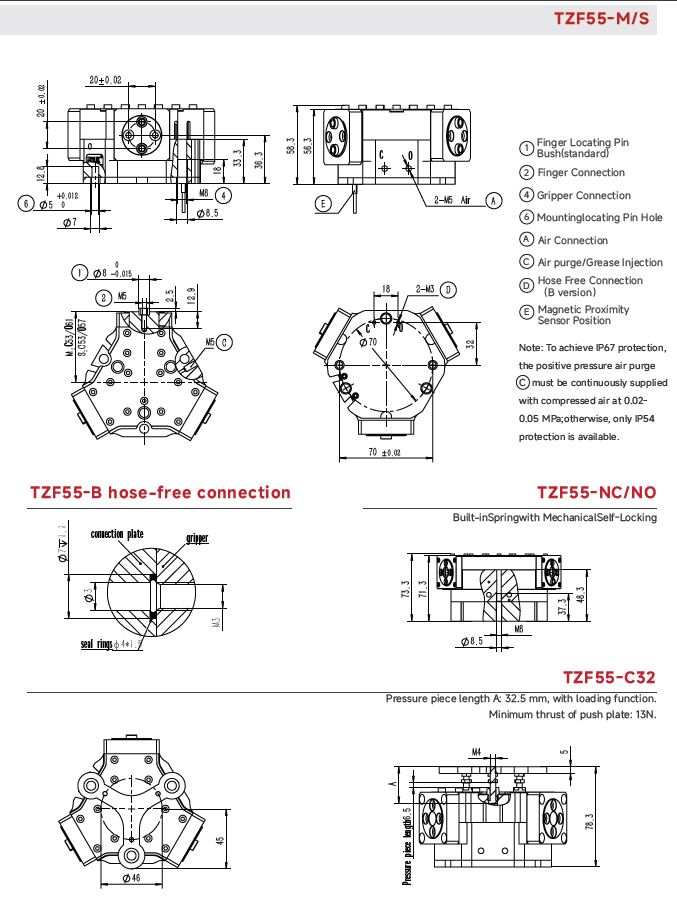 | Tekrarlı tutma hassasiyeti | ±0,02 | Hava bağlantı portu | M5 | ||||
